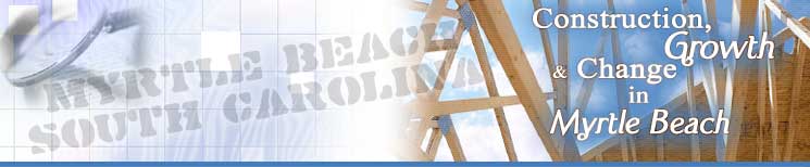 Myrtle Beach Construction, Growth, & ChangeMyrtle Beach was once a sleepy resort town known for annual family vacations and as a favorite destination for students to unwind during Spring Break. Memories of that quaint seasonal vacation destination are fading quickly as Myrtle Beach comes of age.The mom-and-pop hotels that once accommodated the majority of visitors are quickly vanishing, making room for new construction of high-rise condos and plush oceanfront resorts. The growth rate of new construction in Myrtle Beach is so rapid that travelers who visit annually never see quite the same landscape as the previous year. On this site we'll summarize the construction, growth, and changes in the Myrtle Beach area in the hopes that it helps vacationers keep up with new oceanfront condos, hi-rise hotels, lavish resorts, attractions, theaters, new restaurants, as well as new highways and rerouting of secondary roads. Currently we are gathering data and will post our updates shortly. In the interim, we've provided links to sites below with Myrtle Beach area information: Myrtle Beach - North Myrtle Beach - Area Attractions - Local Events - Local Restaurants - Local Map